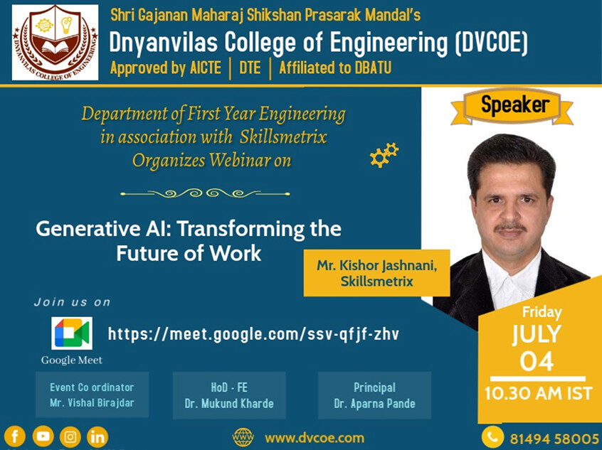 Dnyanvilas College of Engineering (DVCOE), established under the esteemed aegis of Shri Gajanan Maharaj Shikshan Prasarak Mandal (SGMSPM), stands as a beacon of excellence in technical education. Nestled in the dynamic educational corridor of Dudulgaon, Alandi, Pune, DVCOE is dedicated to cultivating innovation, academic brilliance, and holistic growth among the next generation of engineering leaders.