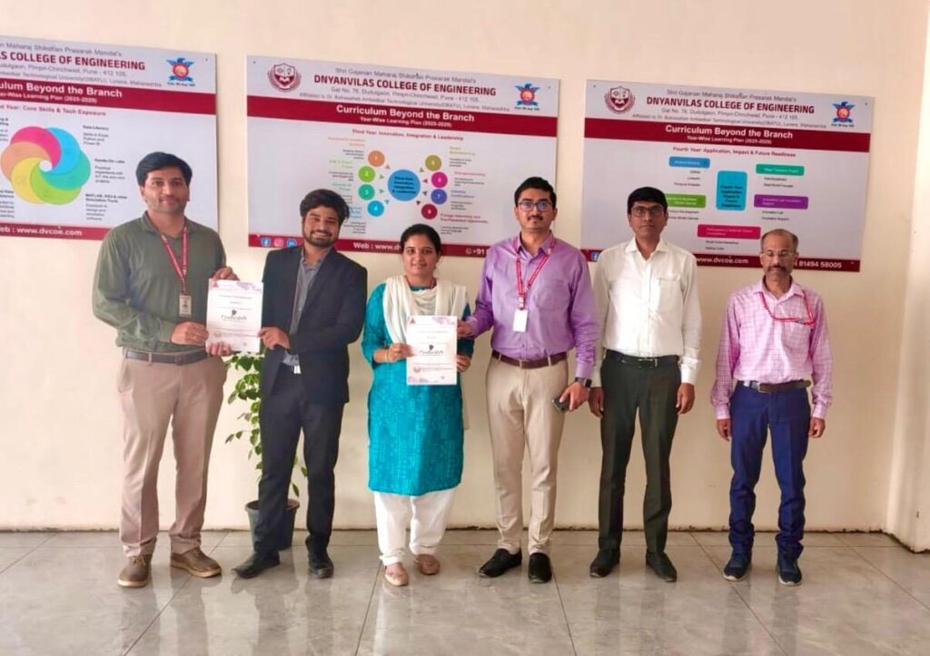 The Faculty Development Session on “Generative AI: Transforming the Future of Work” was organized at Dnyanvilas College of Engineering to enhance the understanding of emerging Artificial Intelligence technologies among faculty members. The session aimed to equip educators with insights into how Generative AI is reshaping industries, education, and research.